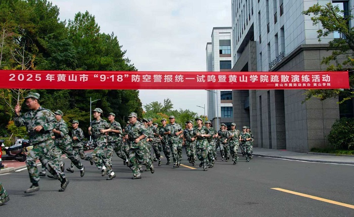 为纪念“九一八”事变爆发94周年,让广大师生铭记历史、勿忘国耻,牢固树立居安思危的忧患意识,9月18日上午,我校与黄山市国防动员办公室在率水校区联合举行2025级新生防空应急疏散演练。学校相关院部负责人、市国动办工作人员、率水校区所有军训新生和教官、山越救援队工作人员参加演练。