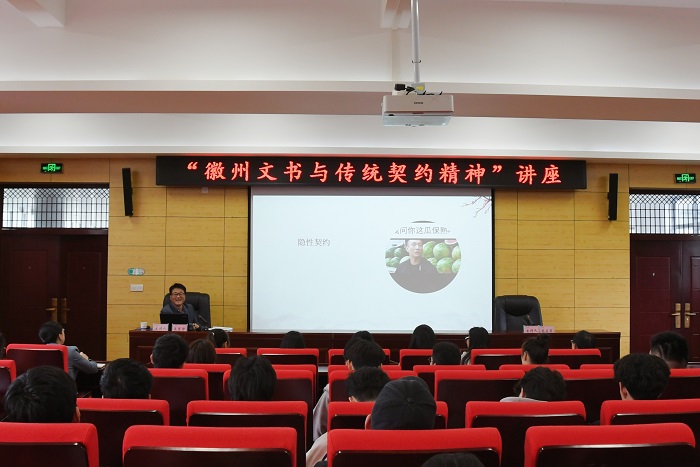 授课教师将这一经典讼案与现代合同法中合同履行、违约责任等内容相结合,引导学生深入分析案例中契约的法律效力、调解方式的优势,探寻传统法治智慧与现代法律的内在关联。立足徽州文化沃土,学校创新探索“文化+法治”普法模式,依托课堂教学、校内徽州文书博物馆、徽州文化展示馆等优质资源,深入挖掘徽州契约精神、调解智慧、德治基因等传统法治元素。徽州文书博物馆收藏了10万余份徽州契约文书,这些文书涵盖田产交易、婚姻家庭、商业往来等多个领域,是徽州传统法治文化的生动载体。自开馆以来,博物馆累计接待师生及社会公众3.4万余人次,成为传播法治文化、弘扬传统美德的“活教材”。同时学校通过举办专题报告会、主题征文比赛、分组辩论赛等形式,引导学生围绕徽州法治文化案例深入探讨,加深对法治精神的理解。