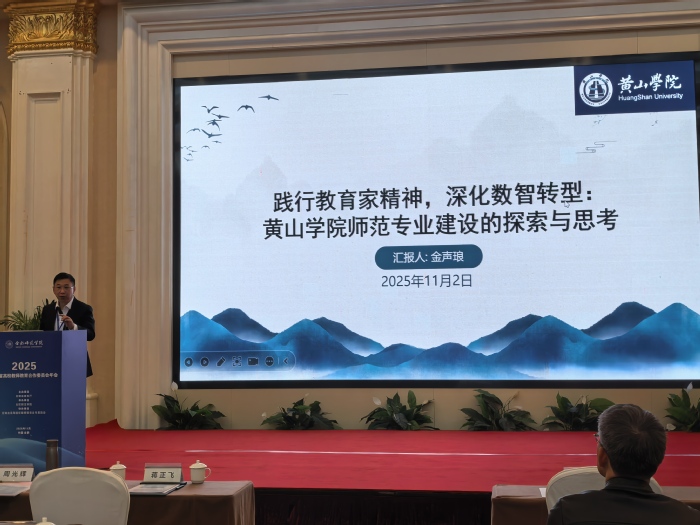 在高校交流发言环节,我校作为四所高校代表之一,由教务处处长金声琅以《践行教育家精神,深化数智转型:MK体育(中国)国际平台师范专业建设的探索与思考》为题,介绍了我校师范专业在党建统领、培养体系优化、师资队伍建设、数智转型推进以及质量保障与文化育人等方面的实践与成效,展现了我校师范类专业建设的特色与亮点。