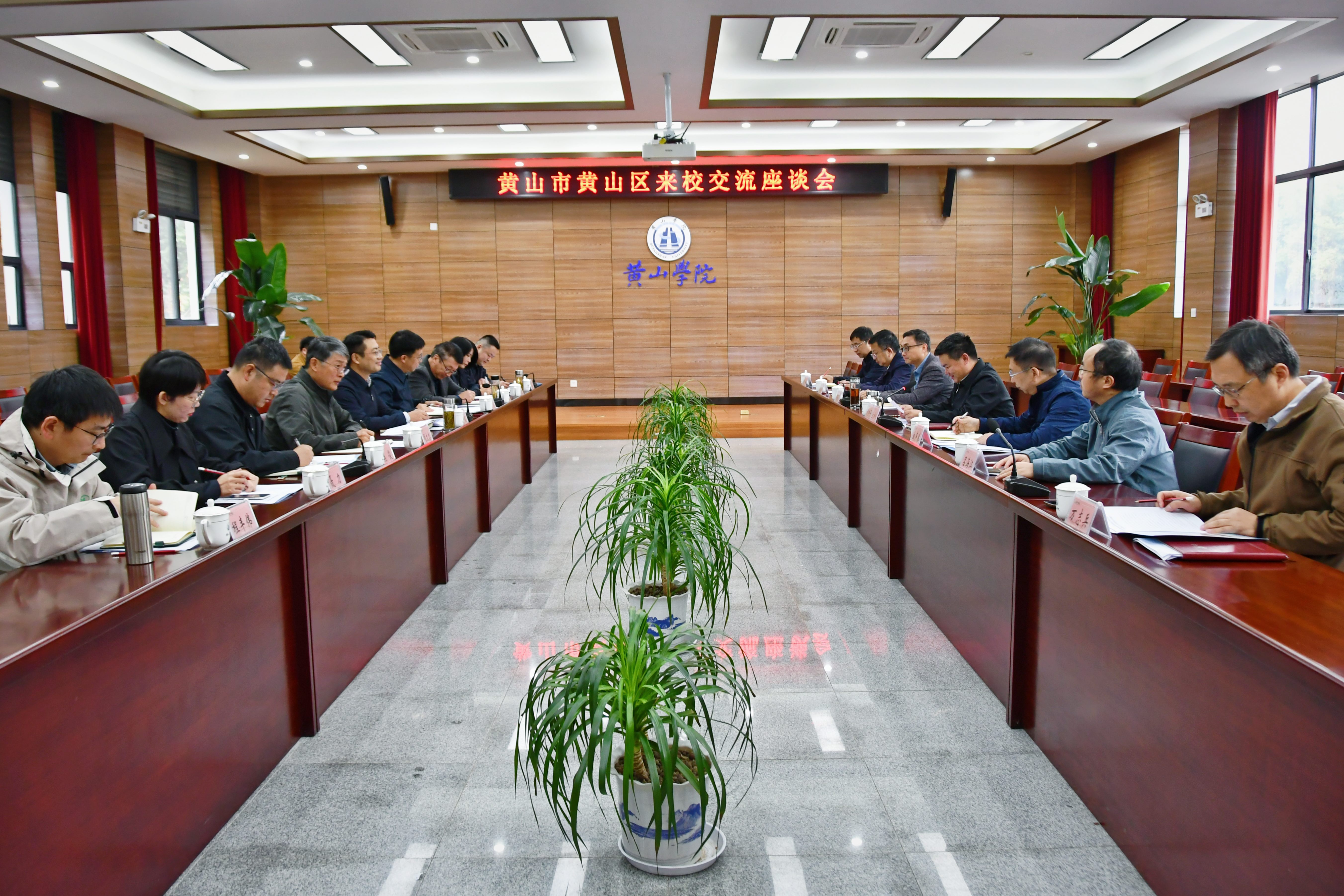 11月4日,黄山区委副书记胡毅,区人民政府党组成员、副区长吴亮,区委组织部、太平经开区、人社局、文旅体局、黄山旅游管理学校等单位负责人来校调研座谈。校党委委员、副院长方辉平,发展规划与社会合作处、教务处、生命与环境科学学院、旅游学院、信息工程学院、建筑工程学院等相关单位负责人参加座谈会。