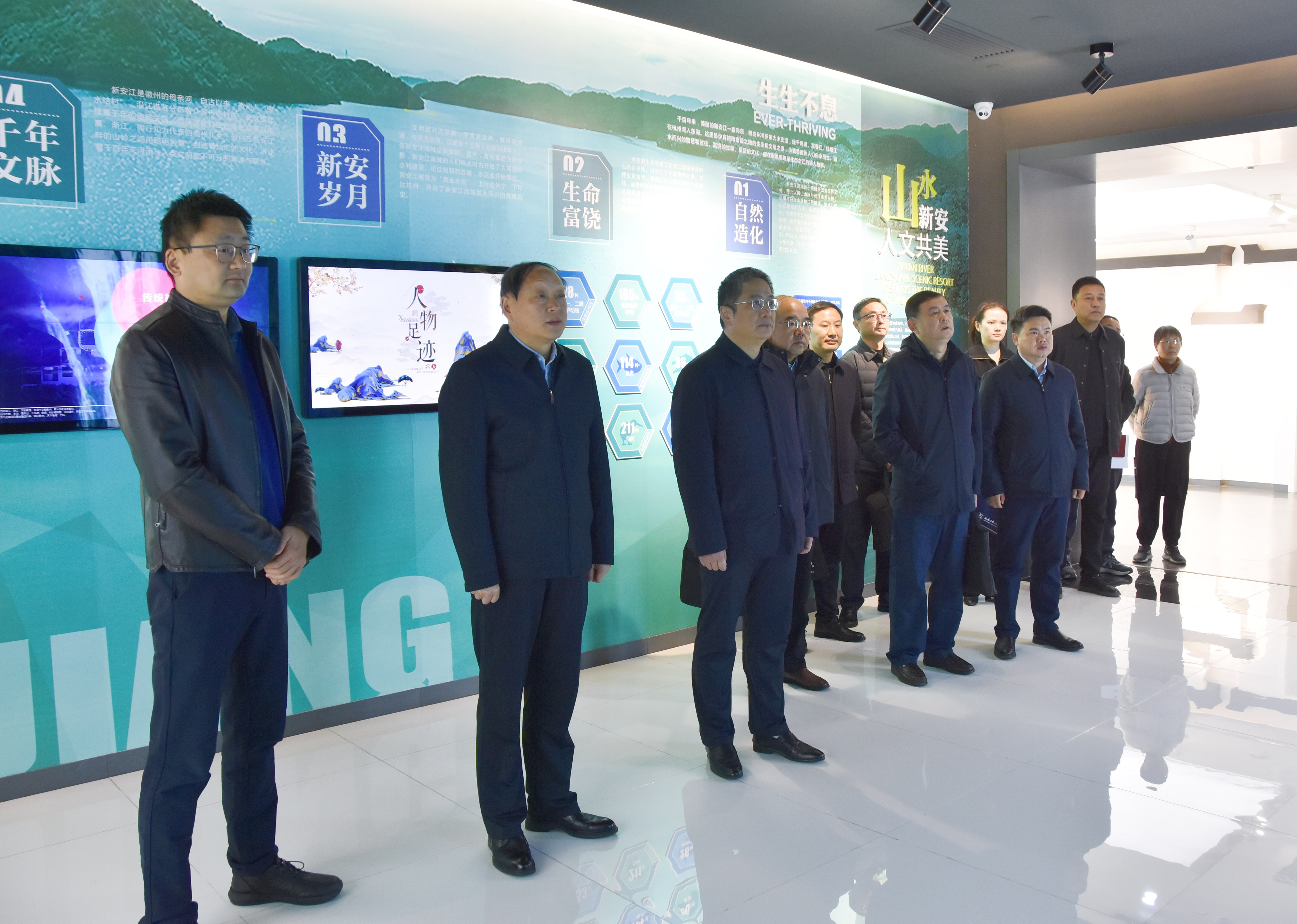 校党委理论学习中心组一行首先参观了黄山市新安江生态文明实践中心,全面了解了新安江流域生态保护补偿机制的发展历程、核心举措与显著成效。
