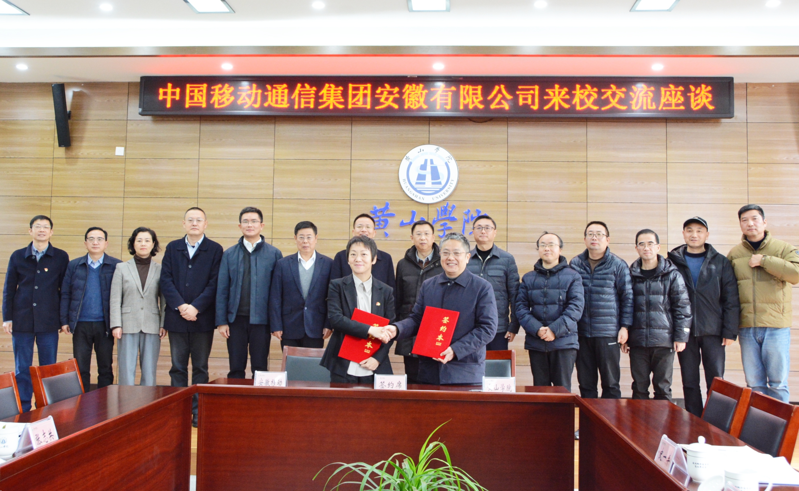 12月16日上午,我校与中国移动通信集团安徽有限公司签署校企战略合作协议。校党委副书记、院长李庆宏,副院长姜红,中国移动通信集团安徽有限公司党委委员、副总经理王晓慧,黄山分公司党委书记、总经理刘艳锋出席签约仪式。