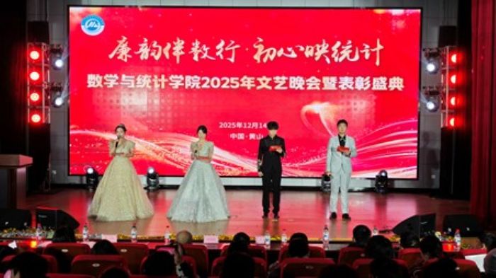 12月14日晚,数学与统计学院2025年“廉韵伴数行,初心映统计”文艺晚会暨表彰盛典在横江校区报告厅如期举行。学院全体教职工及全体2025级新生欢聚一堂,共赴这场青春盛宴。