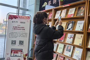 为让红色经典“触手可及”,以创新形式传承历史记忆,11月13日至30日,图书馆推出抗战胜利80周年主题纸电同步书展。本次书展特设“红色主题书架”,系统梳理并集中展示了馆藏中关于抗日战争、世界反法西斯战争的经典著作与最新研究成果100余册。读者扫描图书专属二维码,即可无缝跳转至电子书全文,实现“纸电联动、随扫随读”,打破红色经典阅读的时空限制,提升了阅读便捷性。