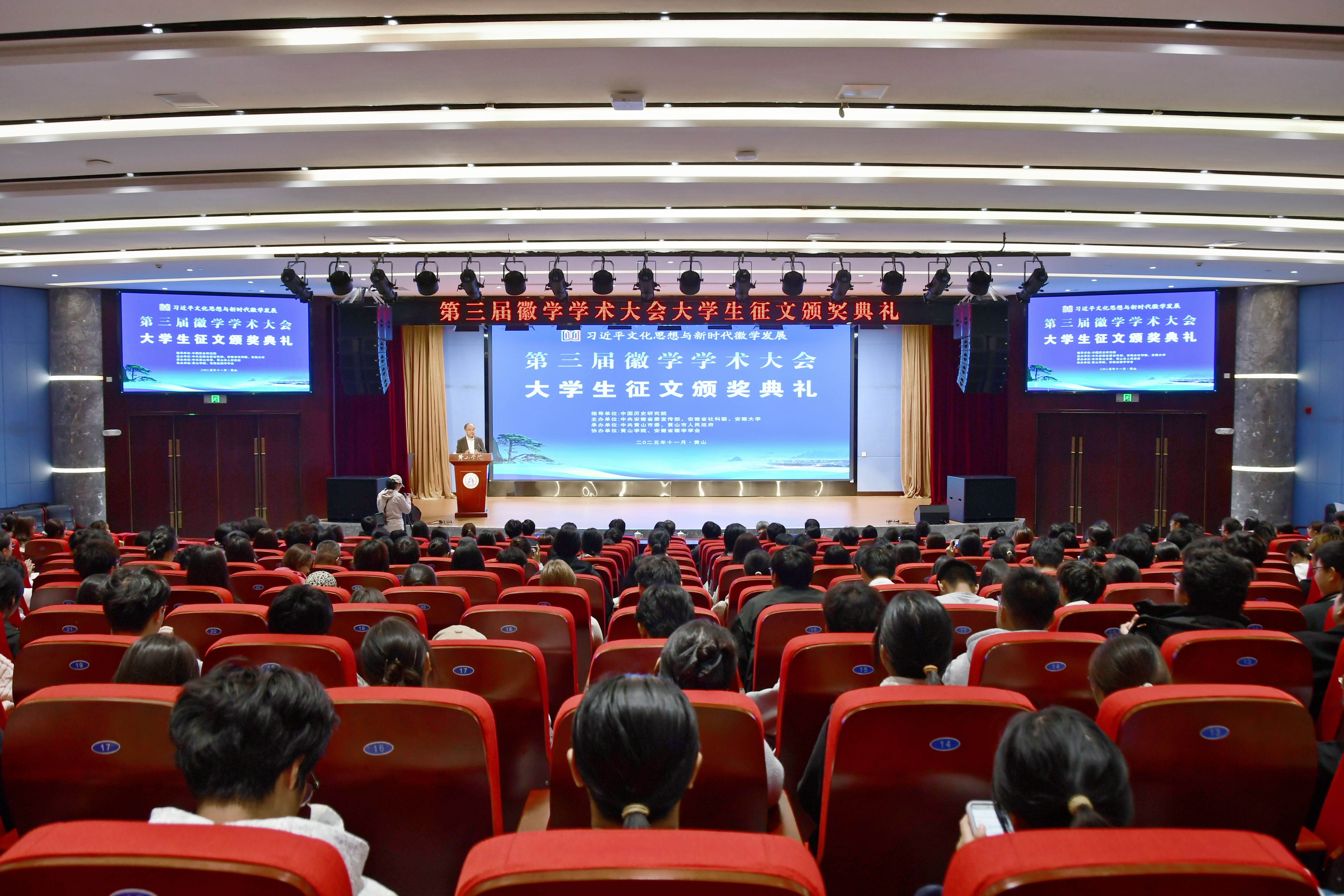 第三届徽学学术大会以“习近平文化思想与新时代徽学发展”为主题,设置了专题调研、徽学研究成果展示、专题片《千年徽州百年徽学》、大会主旨报告、圆桌论坛、平行论坛、“我眼中的徽州与徽州文化”大学生征文颁奖典礼等多种形式。大会特邀专家30人,与会学者80人;《历史研究》《中国史研究》《近代史研究》《学术界》《江淮论坛》《安徽史学》等期刊编辑,中国历史研究院、中共安徽省委宣传部、安徽省社科联、安徽大学、黄山市委市政府、MK体育(中国)国际平台等单位负责同志和相关部门负责人参加会议,另有大学生征文获奖作者和青年师生代表参会。