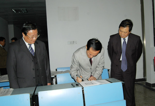 陈强还兴致勃勃地观看了文学院第二届学生新闻作品展,并欣然题词:“导向为先,创新为魂,精细为重,真实为本”。