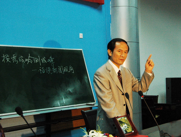 陈强的报告以自己曾经从事新闻工作的经历,以苏轼《题西林壁》诗首句“横看成岭侧成峰”为题,详尽论述新闻采编、传播工作中关于视角选择的重要性、必要性和方法等。他说,新闻的视角是我们怎么去看新闻、去认识、去反映新闻的问题。新闻天天发生,视角各有不同,当一名合格的新闻工作者,首先要有正确的视角。视角有两层含意:一是你的站位,也就是你的立场;二是你的品位,也就是你的思想修养、知识文化在什么层面上。