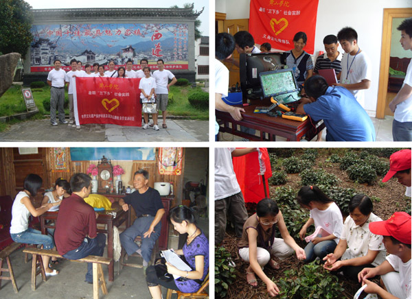 “赴祁门送科技下乡团队”和“赴新安江源头科学考察团队”两个团队分别由生命与环境科学学院副院长方乐金教授和党总支书记唐鑫生副教授带队,聘请了房江育博士后、汪小飞博士、黄松博士、徐圣友博士、王世强副教授、汪立祥副教授等多名教授、副教授、博士、硕士担任全程指导老师,精心打造专家型团队,并取得黄山市林业局、市农委、市农业技术推广中心、市卫生局等部门的支持。在祁门县历口镇湘东村围绕农村实用技术需求、新农村环境建设、山区资源的开发利用等内容,举办了农村实用技术培训班,开展生物能源树种调查、新农村环境建设调查,并给当地留守儿童担任义务家教、筹集衣物等活动。“赴新安江源头科学考察团队”利用GPS等先进仪器设备实地测量,对新安江源头地区的地形地貌、气候、野生动植物种群分布以及保护等情况进行了详细调查。考察期间,队员们深入田间地头、高山密林,通过走访当地干部群众、采集标本,并对收集的资料进行分析研究,为加强新安江源头地区的生态保护提供科学依据。他们还在在海拔1300米、东经117度45分408秒、北纬29度33分75秒处六股尖的山顶立了“新安江源头”标志的石碑。