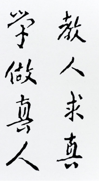 “教人求真”,即以“捧着一颗心来,不带半根草去”的真人品质传真道、授真业、解真惑。“学做真人”,就是要求真知、学真本领、着真道德。
