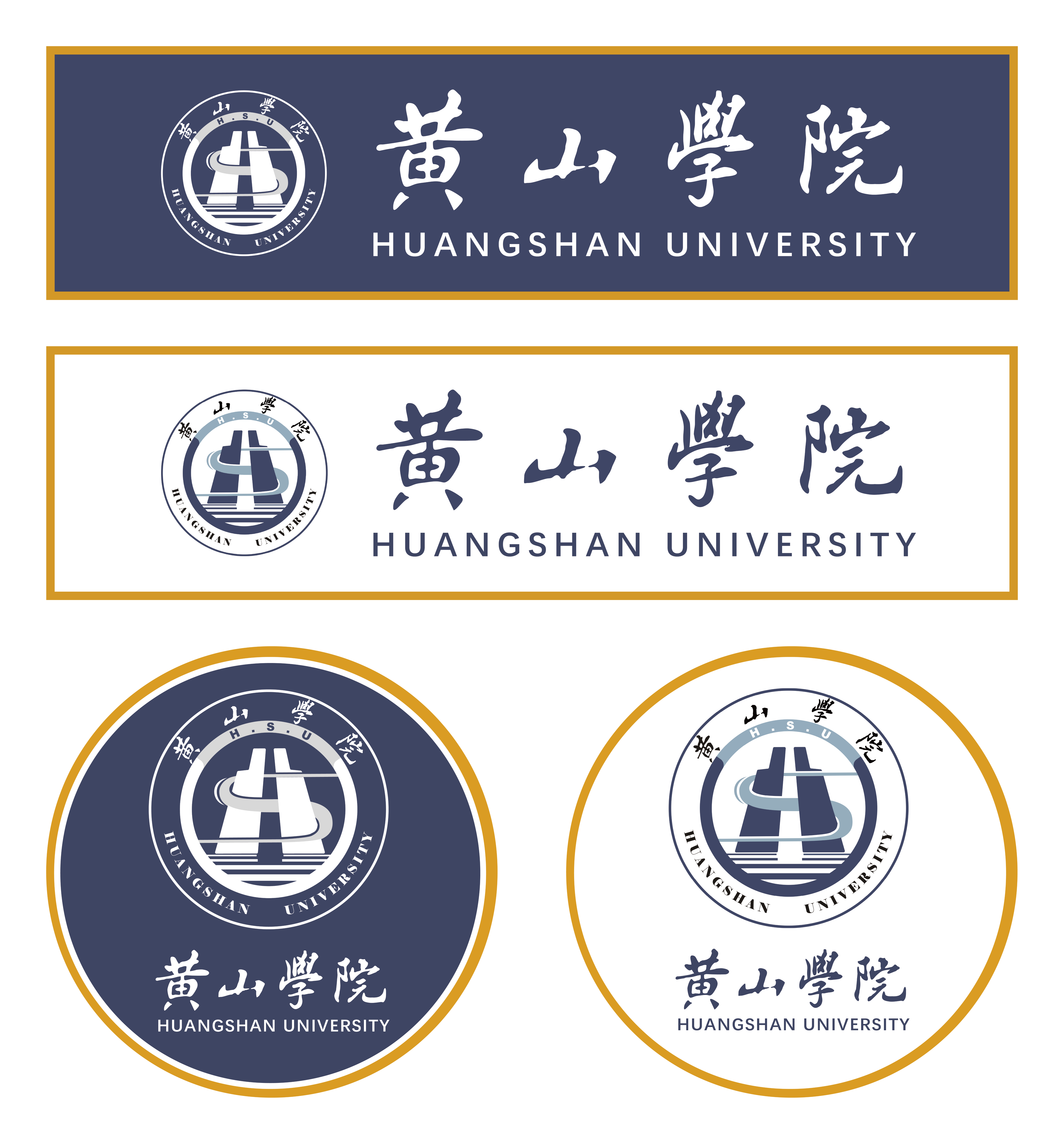 【释义】校徽主要由 H、S、U 三个字母变化而成,字母H由两个具有黄山峰林地质特点的形态组成,挺拔的形态象征着学校蓬勃向上的发展精神,蕴含着“十年树木百年树人”的教育思想。整个H形态为编钟,寓意着学校万众一心的团队精神和警钟长鸣的办学危机意识。字母S贯穿于H形态之中,象征着学子“书山有路勤为径”的求学精神字母U呈半包围形态,将字母H、S包裹其中,象征学校“兼容并包”的办学理念。整个标志将黄山地域特点与学校办学思想进行了有机结合。